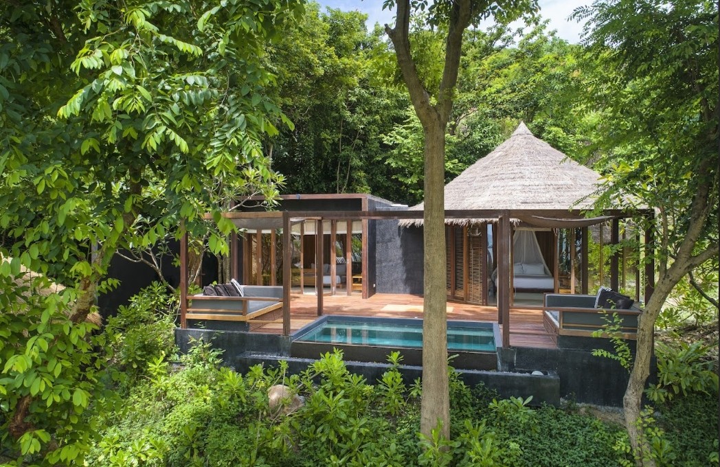 Each villa is thoughtfully designed with rustic charm and modern comfort, offering panoramic sea views, outdoor rain showers, and a deep connection to nature. Whether lounging by the infinity-edge pool or snorkeling in the coral-rich waters just steps away, guests are embraced by the island’s unspoiled beauty.